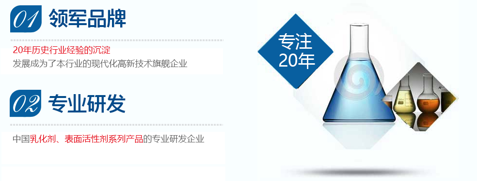 本公司依托淄博的化工區位優勢,掛靠大中?;ぴ盒<翱蒲袉挝?,專心致力于非離子表面活性劑的開發、應用,是國內較早從事研究、開發、生產非離子表面活性劑的廠家之一,主要產品有:烷基酚聚氧乙烯醚(OP、NP、TX)系列、脂肪醇聚氧乙烯醚(AEO)系列、(平平加)系列、失水山梨醇脂肪酸酯聚氧乙烯醚(吐溫系列)、失水山梨醇脂肪酸酯(斯盤系列)、椰子油二乙醇酰胺(6501)、滲透劑系列、十二烷基苯磺酸、脂肪醇聚氧乙烯醚AES、油酸、三乙醇胺、椰油酰胺丙基甜菜堿CAB-35、聚醚系列、添加劑系列、聚乙二醇系列、乳化劑酯醚系列等等,產品遠銷全國各個地區,客戶上千余家,乳化劑在用戶中享有很高的聲譽,市場占有率逐年攀升。近年來,企業...